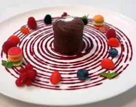 Schwarzes Gold in zartschmelzender Form: ein unwiderstehliches Fondant au Chocolat, getaucht in die Tiefe exquisiter Valrhona-Schokolade.