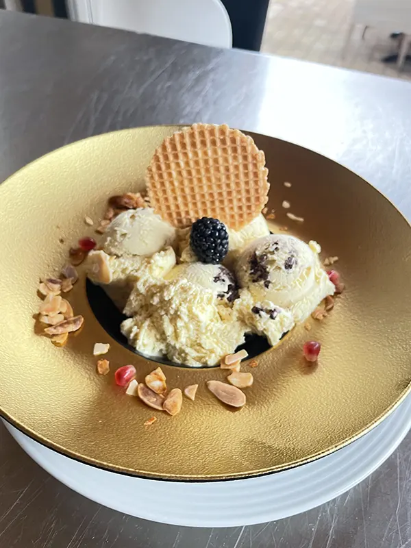 Der Außenbereich erstrahlt in neuem Glanz mit der Neueröffnung von "Eis und Chill". Ein Ort, an dem Genuss und Entspannung auf harmonische Weise verschmelzen. Unter strahlendem Sonnenschein laden wir Sie ein, sich in unserem Gartenparadies niederzulassen und die köstlichsten Eissorten zu probieren. Lauschen Sie dem sanften Rauschen der Blätter, während Sie Ihr Lieblingseis kosten, und lassen Sie die Sorgen des Alltags hinter sich. Gemeinsam feiern wir diese erfrischende Neueröffnung und freuen uns darauf, unvergessliche Momente der Gelassenheit mit Ihnen zu teilen. Willkommen bei "Eis und Chill" – Ihrem neuen Ort für Genuss und Entspannung im Grill au Bois!